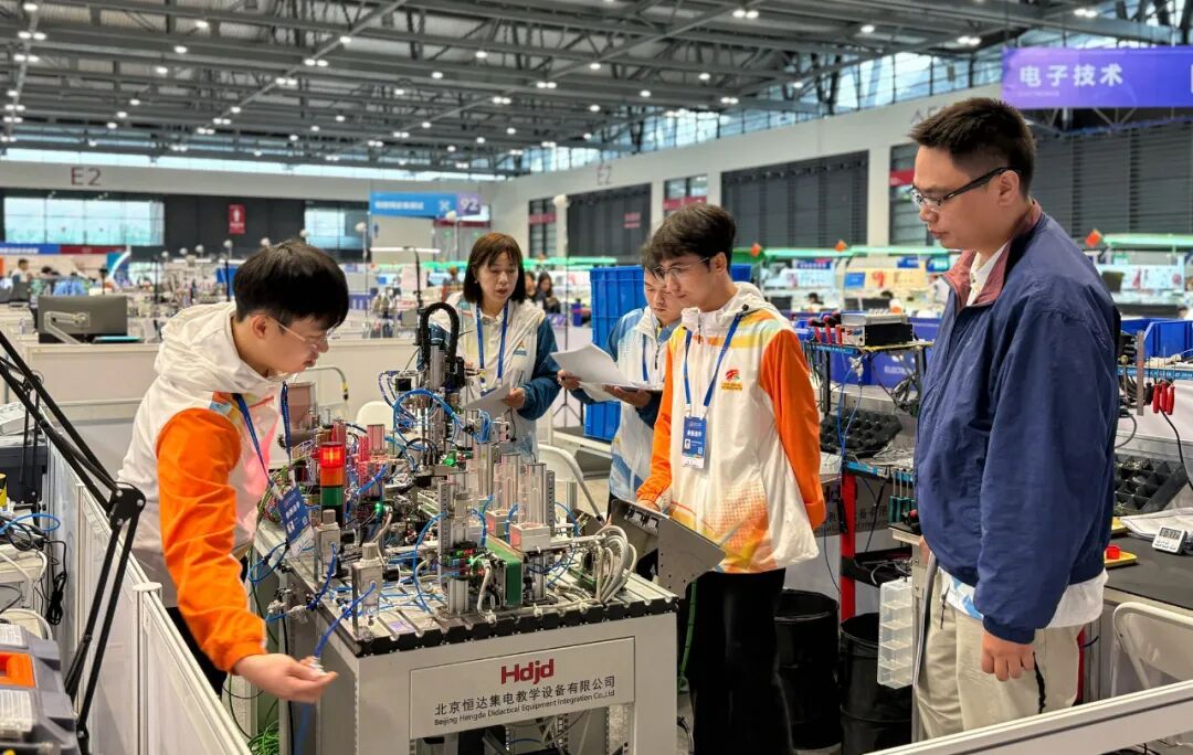 在机器低鸣的实训车间,穆海麦尔·苏来曼江的编程屏与于浩冉的装配台之间,仅相隔两米,却承载着两名青年技能者跨越千里、心意相通的默契。这对来自伊犁技师培训学院的搭档,在中华人民共和国第三届职业技能大赛机电一体化赛项中斩获优胜奖。
