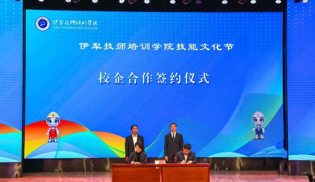 仪式上,由伊犁州人社局党组书记曹春山和伊犁技师培训学院党委副书记、院长蒋余强共同揭牌的“伊犁技师培训学院技能竞赛俱乐部”正式成立,标志着学院技能人才培养迈向体系化、专业化新阶段。开幕式现场,学院与新疆银河谷养老产业投资(集团)有限公司签署校企合作协议,进一步拓宽学生实习就业与人才共育渠道。