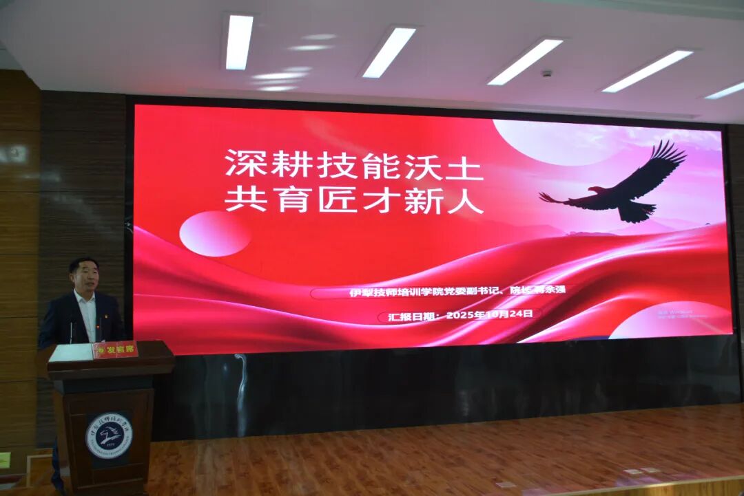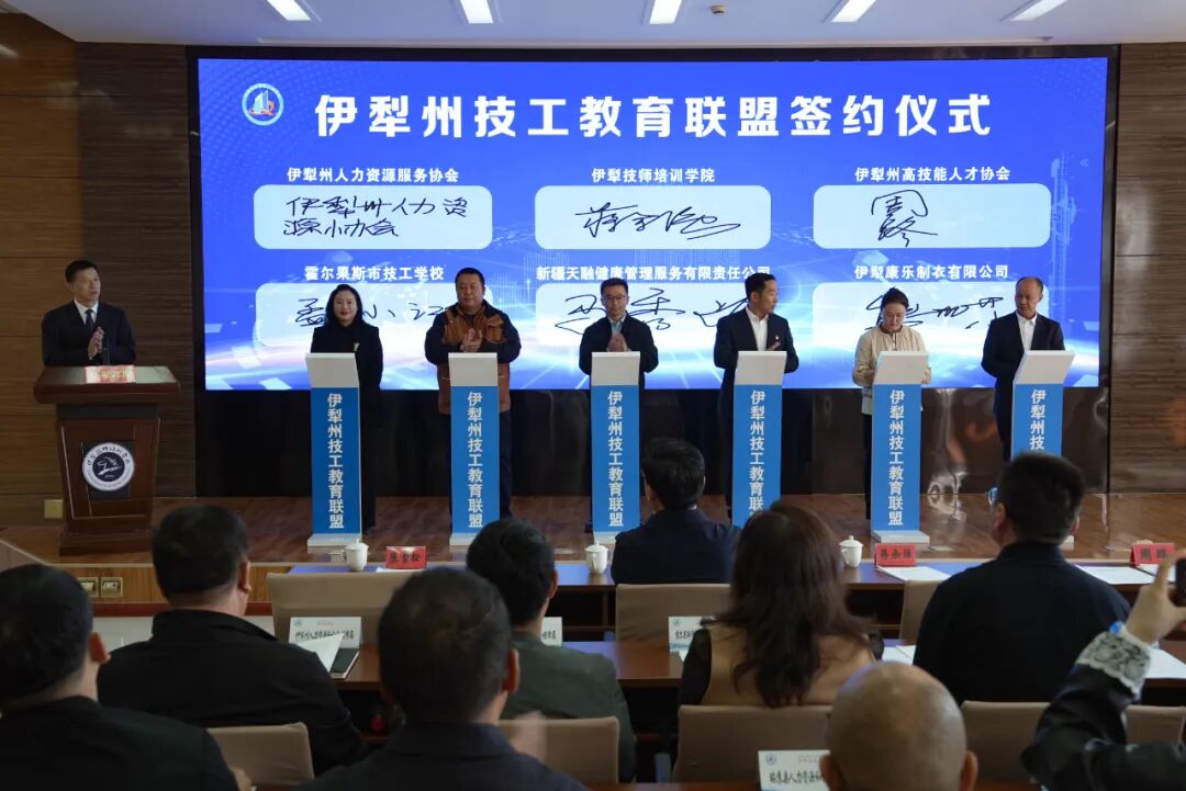 伊犁州技工教育联盟第一届大会暨高技能人才协会年会在学院立德楼九楼会议室成功召开。会议在州人社局党组书记曹春山的致辞中启动,随后与会代表共同签署了《伊犁州技工教育联盟倡议书》,并为“伊犁州伊来高技能人才创新中心”揭牌。在交流发言环节,伊犁州高技能人才协会周路会长做了专题报告,伊犁新天煤化工有限公司分享了高技能人才培养经验,特克斯县民宿协会就“特克斯民宿管家”劳务品牌建设进行了交流分享。